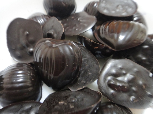 2.為了要做不含糖的巧克力,試著用可可粉加牛奶加咖啡, 做出來的巧克力別有風味.巧克力的成本實在太高了, 一瓶巧克力粉大約300元, 可用來做50顆巧克力,再加上杏仁角及包裝紙,成本約500元,平均一顆成本就要10元,難怪外面的巧克力價格昂貴.