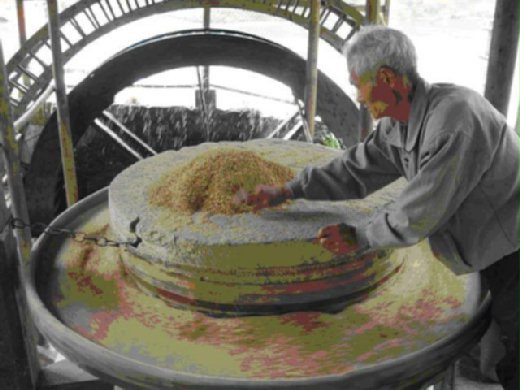 拉磨的驢子要帶著捂眼,一是防牠吃麵粉,一是防牠的頭會暈。做一次麵粉,少則半天多則全天,那像現在可以買現成的。