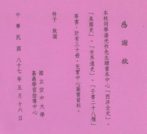 如今這些書捐出去,空大地區中心送我一張《感謝狀》,看看,是沒有《用印》,這是普通常識,承辦人未學過。