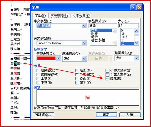 ★隱藏中間一字:選取中間字,按【CTRL+SHIFT+H】,中間字發生變化。