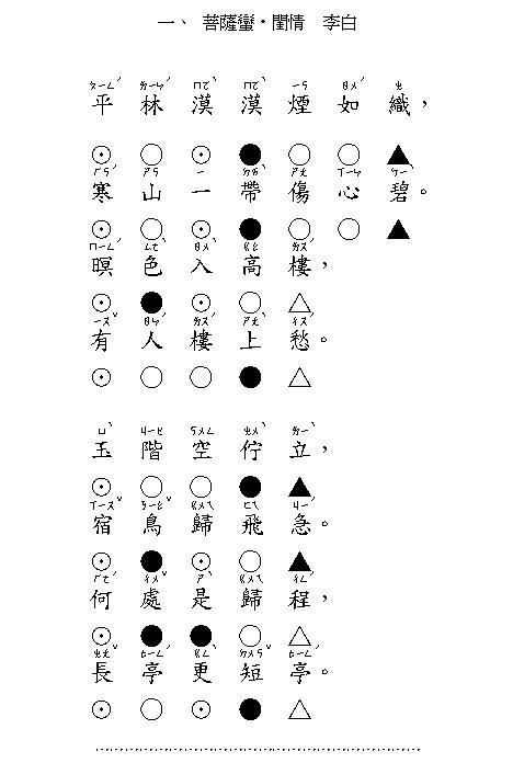 (○平聲 ●仄聲 ⊙可平可仄 △平韻 ▲仄韻)