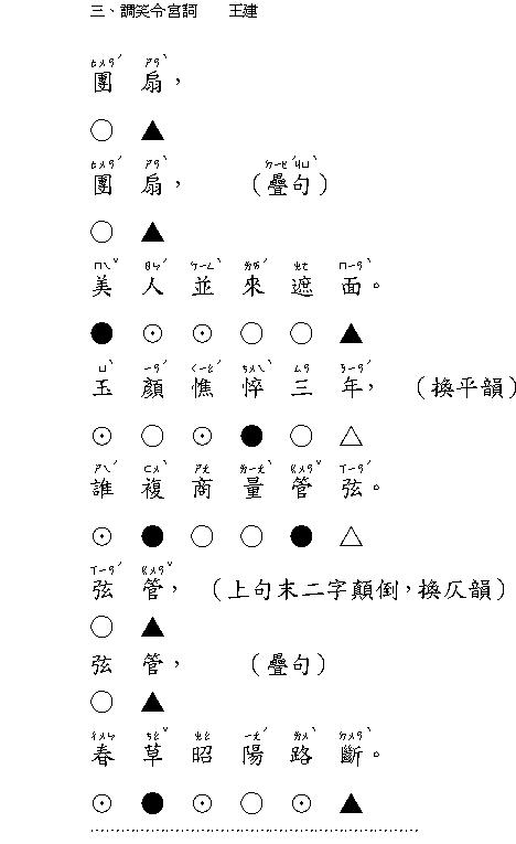 百(白)香詞譜(第三種詞牌-調笑令•宮詞)平仄譜 加注音