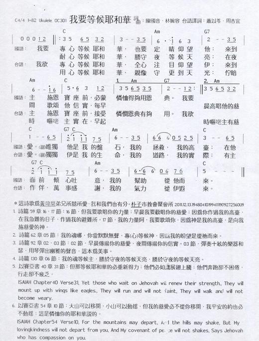 詩歌吟唱由 黃煒椉 及 劉瑞國 倆位弟兄帶領,每週小排發單張詩歌簡譜,配合 晨興聖言 進度實施之,以下將手邊資料,不按順序整理上傳。