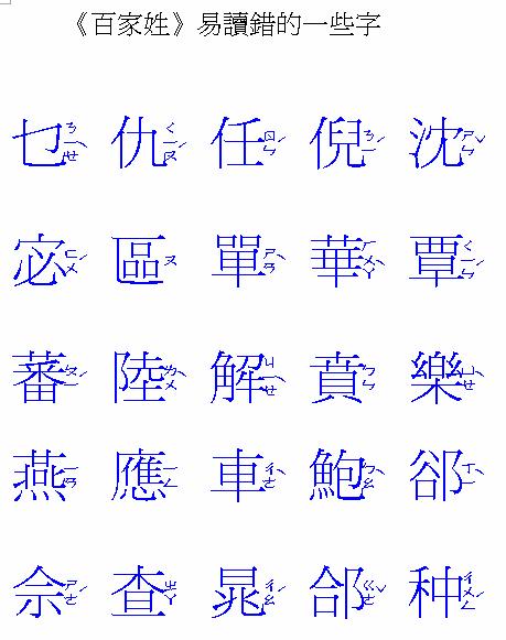 《百家姓》易讀錯的一些字