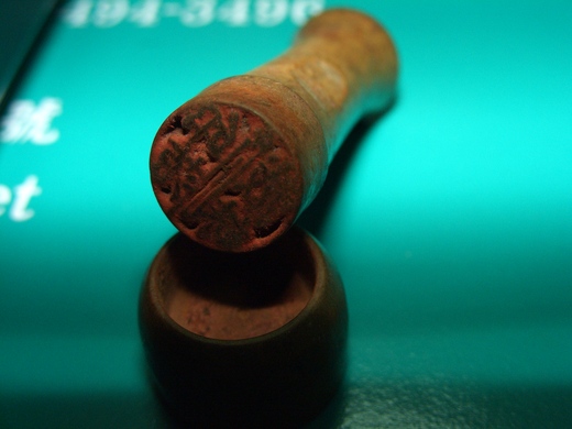 印章,一直是中國人隨身之物,無論是金融機關存摺提款,或公務機關洽公,甚至是私人契約簽定,或書畫之落款,都離不開印章,而這枚小小的印章也伴隨著中國人走過了一個又一個悲歡的世紀,無論是圓形小章或至最近的方形章,確實記錄了中國人的悲歡。圖中這枚木質的圓形小印章,流行於日據時代,有近百年歷史,雕刻技法除了純手工,一筆一畫雕刻,與目前的機器雕刻不同外,還加上一個雕刻得十分合適的小型木頭圓套,雖已不再使了,卻成為許多人珍藏的焦點。