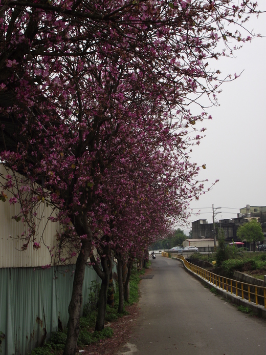 大溪鎮南興西岸的羊蹄花盛開了,一整排的羊蹄甲在道路旁開得十分茂盛,粉紅色的花蕾迎風搖曳,常為路過者帶來視覺的驚喜。