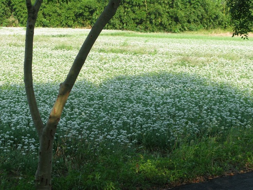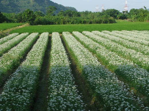 路過這片韭菜園區,遠望一片雪白色的韭菜花,如雪花鋪蓋在大地上,於是,當地人給了這片韭菜花一個非常詩意的名字──九月霜。
