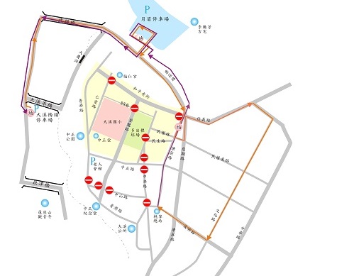 行經大溪鎮橋頭停車場→武嶺橋→月眉停車場→康莊路→民權東路→慈湖路→信義路→中華路→文化路→復興路→康莊路→月眉停車場→武嶺橋→橋頭停車場。