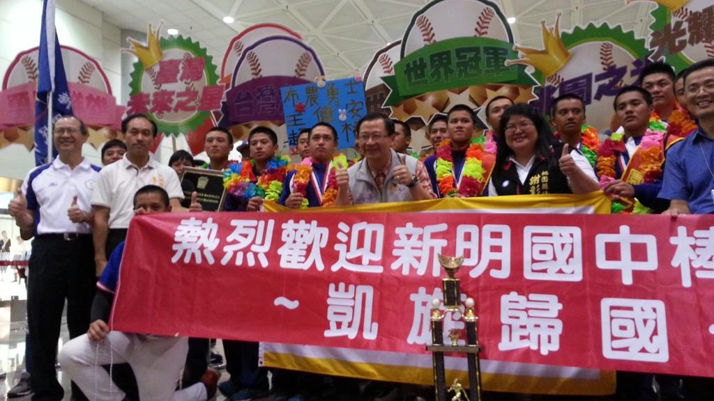 (與國手邱繼亮合照於桃園機場--2013世界青少棒賽冠軍返台)