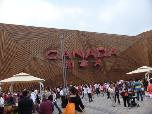 加拿大館位於世博園區C 區, 館外排隊人龍非常壯觀! 第一次陪小貓去看加拿大館,等在入口處, 發現有白人手拿護照就不