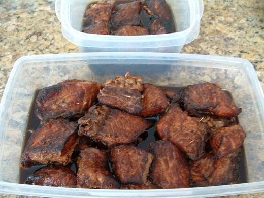 我通常請客前一兩天做好﹐連魚帶醬汁一起放入密封的容器裡﹐儲存在冰箱。