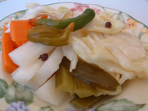 謝謝西行者傳授本家秘訣。我第一次泡四川泡菜時﹐花椒加太多﹐滷水的顏色變得黃黃的﹐泡好的白蘿蔔和高麗菜變得一點也不白﹐雖然味道是對的﹐但是顏色不好看。照西行者本家的作法﹐就不會有這個問題了。
