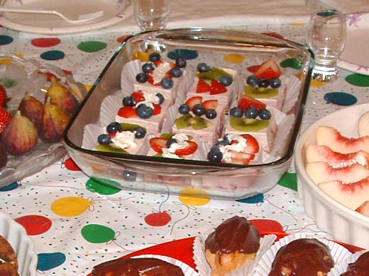 - 食用時﹐為求美觀整齊﹐將蛋糕邊緣切除﹐然後切成16塊﹐擺盤時上面裝飾新鮮藍莓等水果。