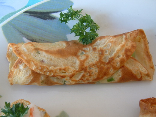 等麵糊凝固(大約半分鐘)﹐翻面數秒鐘﹐便可起鍋。
