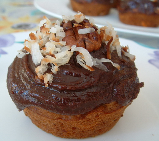 等蛋糕稍涼﹐上面抹一層糖霜﹐再灑一點烤過的椰子絲。或是灑切碎的堅果。
