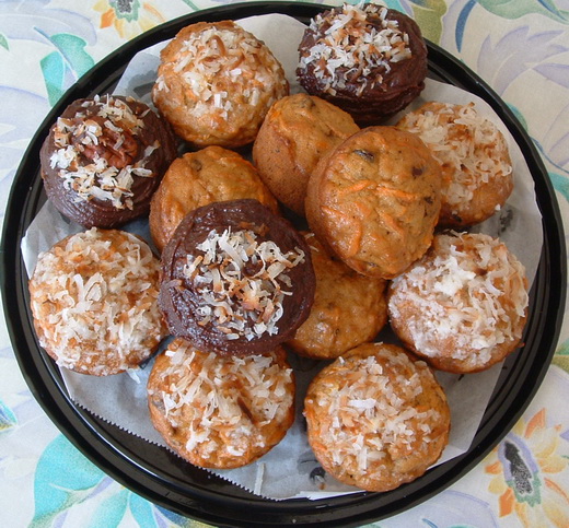 一直以來都用 13"x 9" 長方形烤盤做這道我最愛的紅蘿蔔蛋糕﹐最近改用瑪芬烤盤﹐發現更方便﹐不但縮短烘烤時間﹐還可有更多的糖霜裝飾變化。