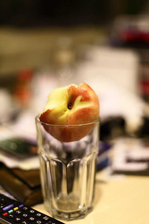 晚上沒吃飯,一個人要煮自己的一份真的很難煮,乾脆不煮了,翻翻冰箱找到水蜜桃來嗑,順便替它留個念,謝謝它把我的胃填滿了!