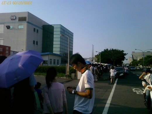 於是打電話給我妹,告訴她現在三點四十分才到工業五路 21號開始排隊。