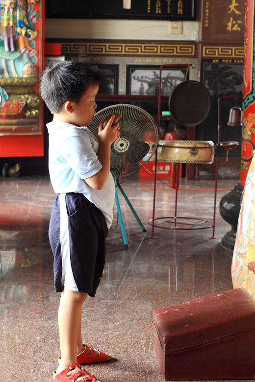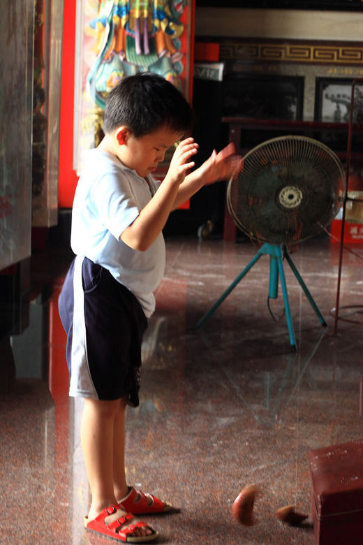 星期六中午我帶亮亮去路口的玄天上帝的廟拜拜,捻完香也拜完了一回,亮亮說他要拿笅跟神明講悄悄話,我就問他想問神明什麼,他居然回我:我問祂年年有餘?擲出來的居然是聖笅!