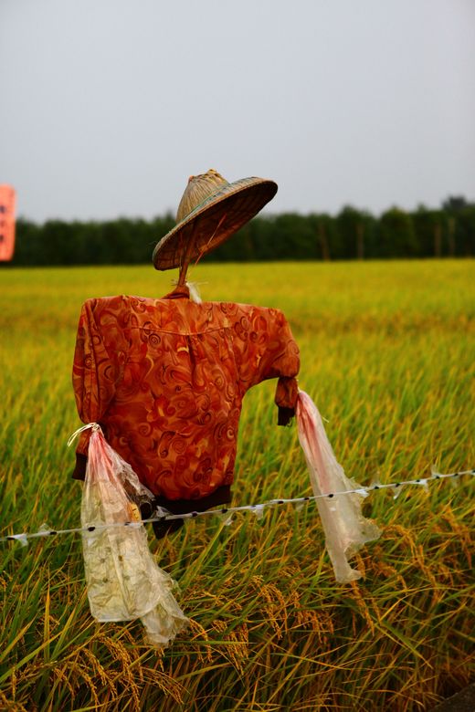 看到我外公的田,我在想...那個叫做假人還是稻草人?明明就拿我外婆不穿的舊衣服掛著要來嚇麻雀丫!麻雀根本就嘸勒驚.....
