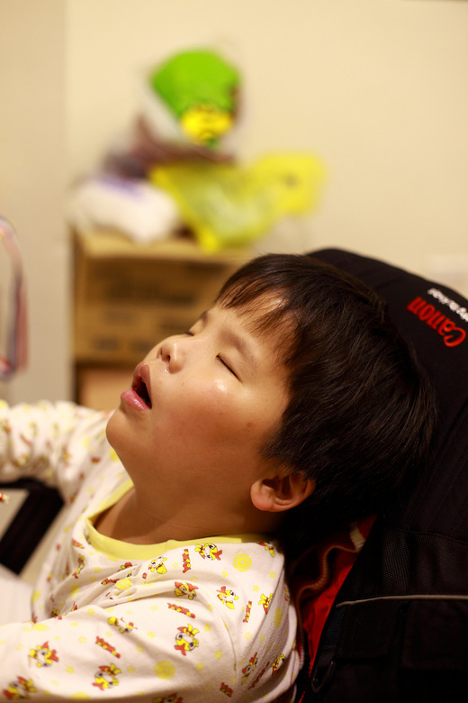 想必亮亮一定累爆了,坐著也能呼呼大睡