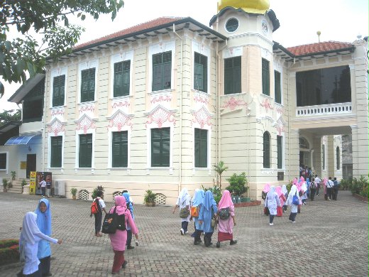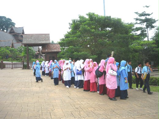 (馬來女人已經比阿拉伯國家開明多了。這是小學生的校外教學,正要去參觀文物館。女學生的制服更是要包得緊緊的。)