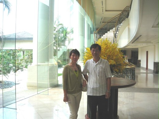 (碧蓮是新山凱悅飯店的常客,因為每次從歐洲來馬來西亞為芭蕾舞學生做鑑定考試的教授們都下榻於此飯店。碧蓮的臉孔及好身材就是凱悅飯店的通行證。照片右立者為此次導遊清。)