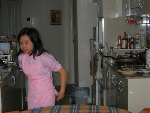 小旦小一邊看媽咪吃,一邊邀功:「做這個很難耶,我重做三十幾次才做成吶。」 原來小旦小把巧克力糖切削削下來,拿到微波熱十秒鐘,放在盤子上,慢慢刻成心型。 媽咪趕快去檢查她剛從澳洲買回來的巧克力糖,一整盒都快光了! 小旦小說:「我用了三顆做這個心給妳。」然後指指她的肚子,「其他顆都跑到這裡去啦!」 媽咪掀開她的小肚肚,果然圓圓滾滾,唉~~ 小旦小剛發育,可是肚子還像嬰孩ㄧ樣圓滾,媽咪每次要她節制飲食,才能長成少女美妙的身材。可是小旦小總是當耳邊風,對「消滅」巧克力糖這種事,非常熱中。