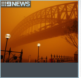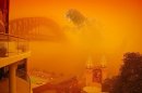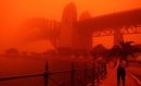 雪梨清晨一片橘色濃霧,七點多了還未散去..