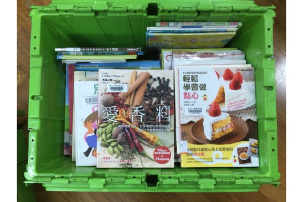 此次先借400本書/共8箱。書籍種類包含社會科學、史地、文學...,當然兒童繪本也有。