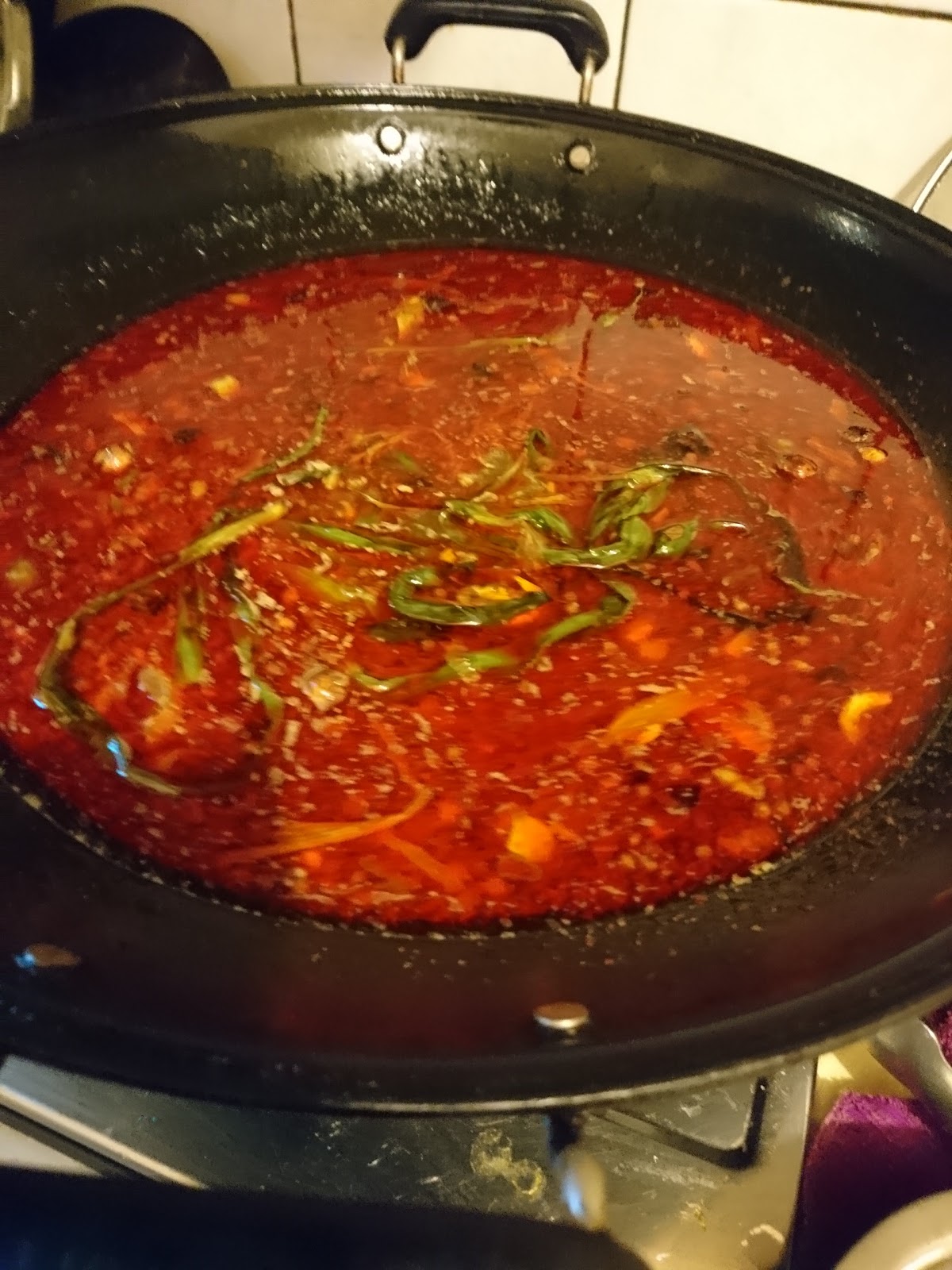 鍋底的作法其實應該有個家用版本,一般人用用辣椒粉取代辣椒乾與燈籠椒就好.
