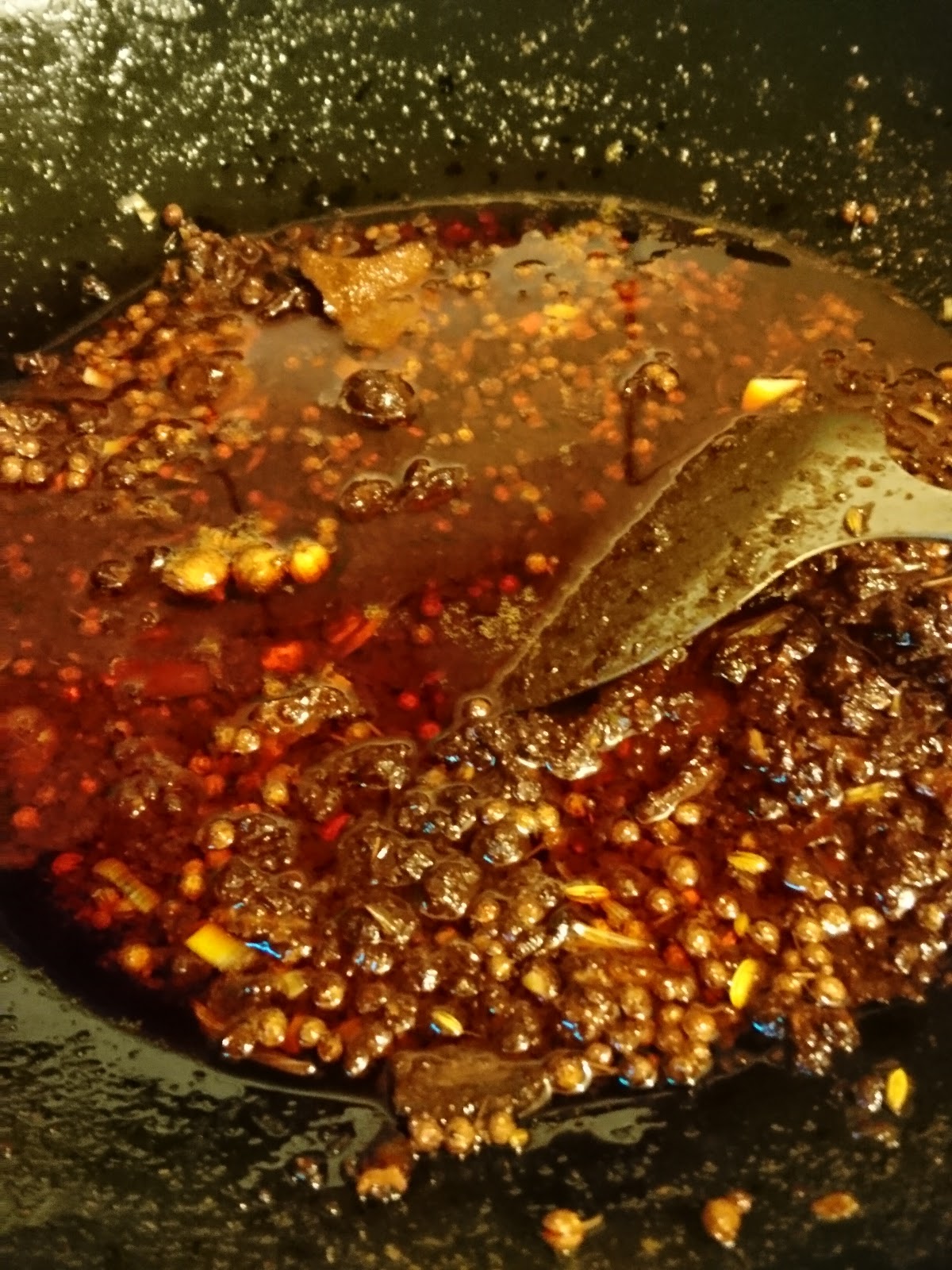 炒鍋底醬料是最討厭的, 這鍋看起來辣其實不辣.所有辣味都在炒的時候衝出來,眼睛鼻子難過死了,抽油煙機全開也沒用.如果還有下次我要戴上口罩眼罩........難過死了.