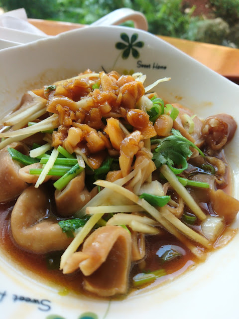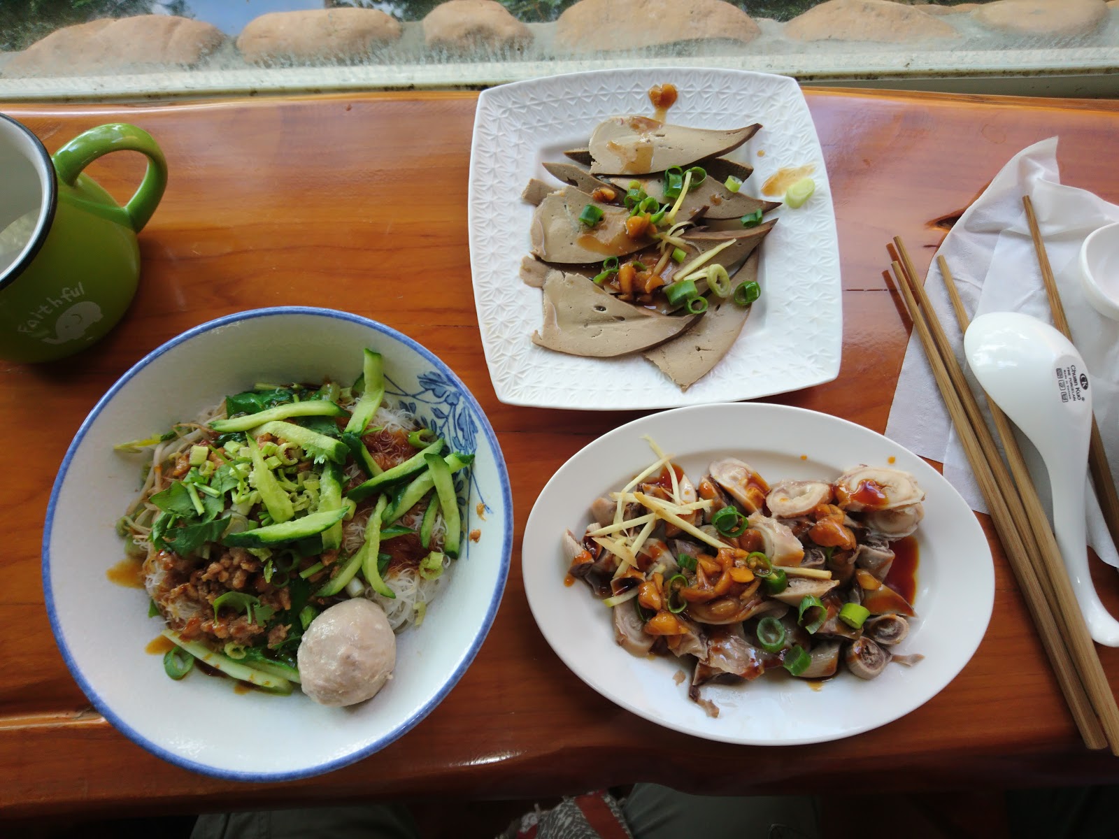 客家人做的豬雜真不是普通好吃。 一哥炊粉的餐具沒有塑膠的。全部瓷器。喝水也是可愛的磁馬克杯。又感動一下,這麼體貼地球。