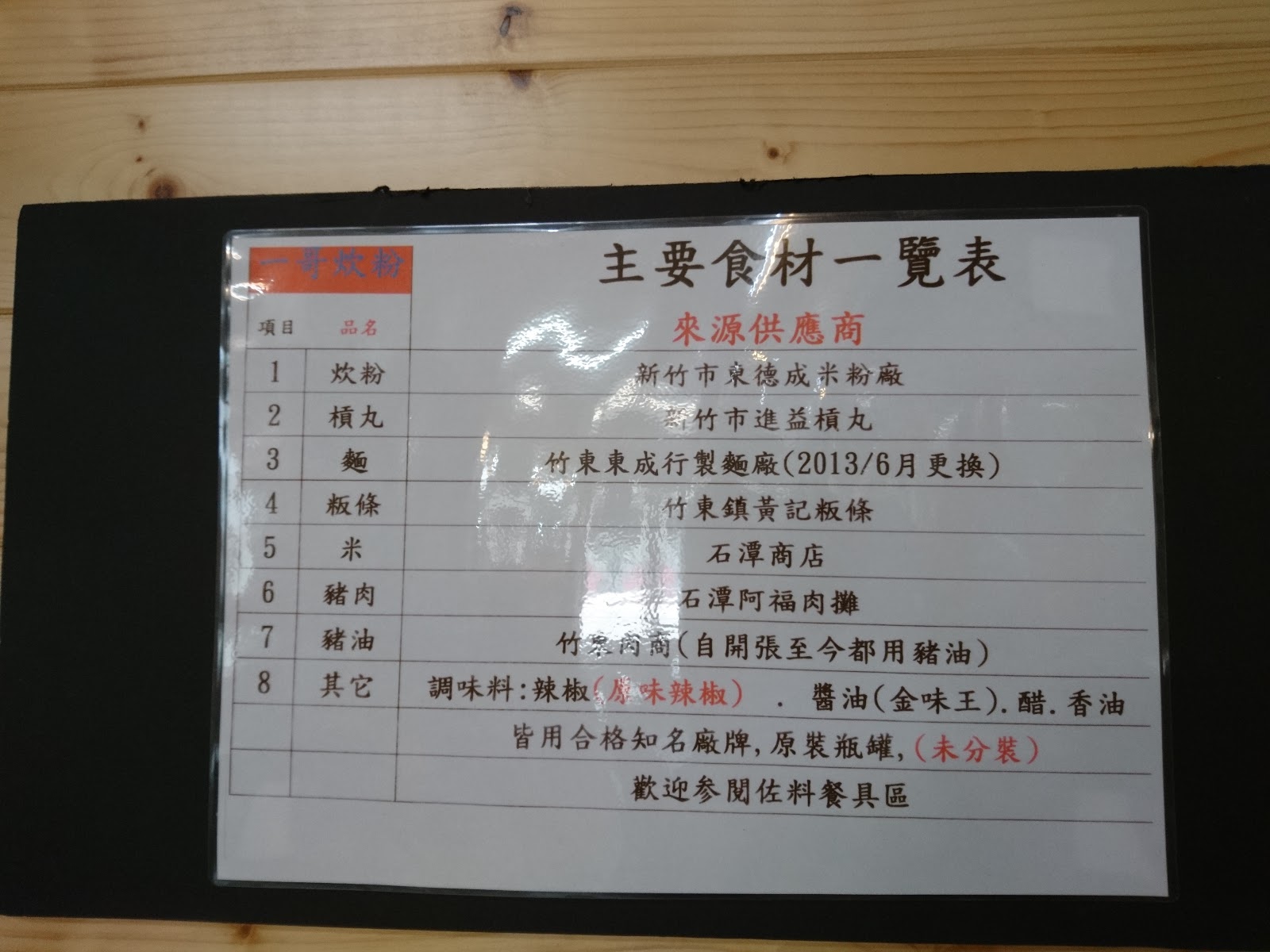 吼,吃到新鮮的純米炊粉非常感動。我在家裡也吃東德成的米粉。不過芎林這家用新鮮的,比乾燥的好吃。沒想到開小店竟然用這麼好的材料。所有食材來源全部交代清楚。其實調味料也是,但我沒拍。