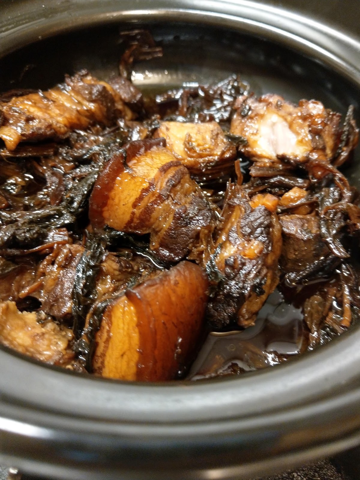 如果不是需要過年吃,保存好幾天。做梅乾菜燒肉比扣肉好吃,瘦肉部分不會那樣乾。