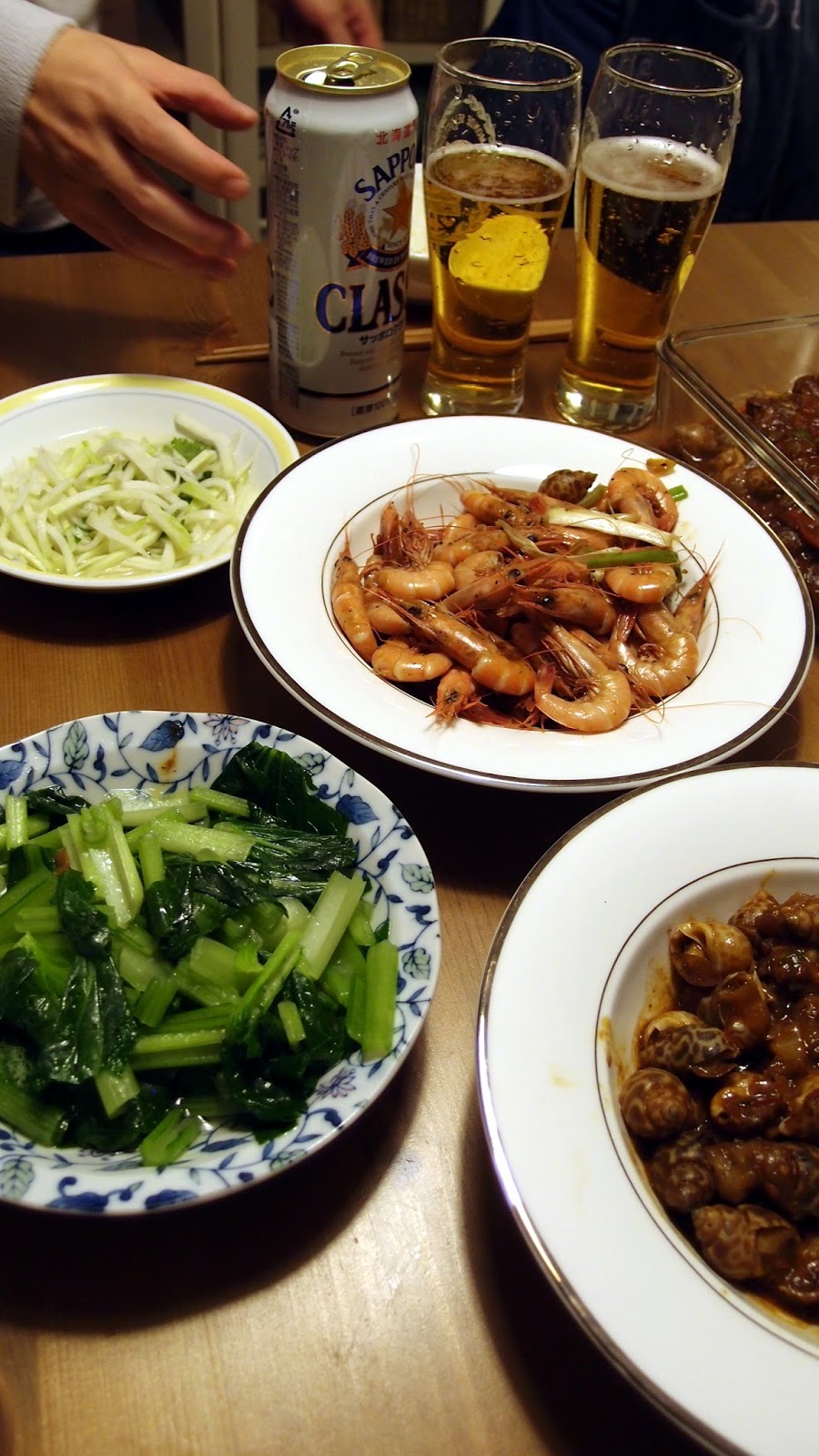新鮮的螺有種鮮味,很像小時候大人不給我吃的燒酒螺,哈哈。不能喝冰的,這種天氣喝室溫的啤酒很舒服。