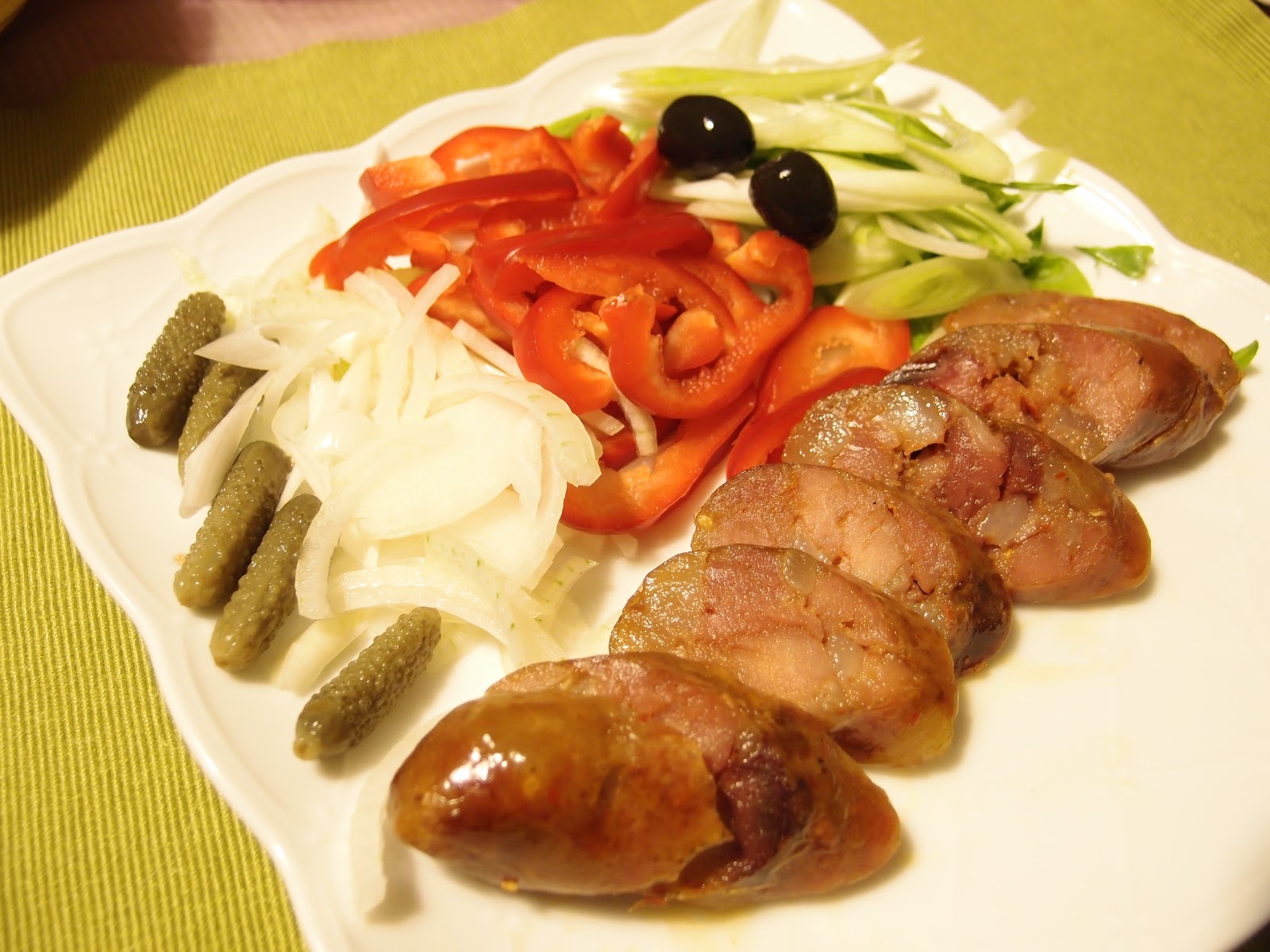 吃香腸怕硝酸鹽那就用蒸的。然後多吃點維他命C多多的蔬果。樓上的大圖就是蒸完切片,配上醃黃瓜,洋蔥絲,新鮮紅椒,黑橄欖,還有蒜苗。(我在實驗配哪些好吃)