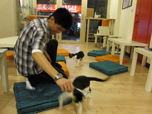住家附近最近開了一家貓咪店,還沒探聽清楚狀況,我只說博愛街有一家貓咪可以坐著和牠們玩,兩個很興奮說何時可以去?