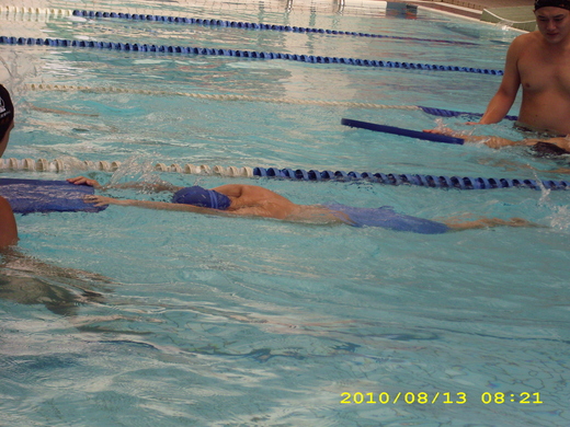 今天上到第5堂,考過了"自由式的滑水動作".悶氣.律動呼吸.蹬牆打水....