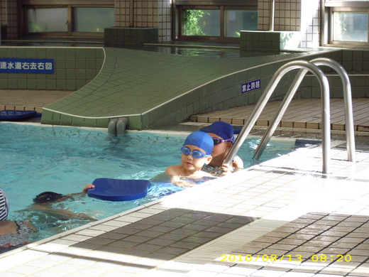 可能是團體班,雖然進度沒有很快,但~可以和小朋友一起玩水,排隊學習,![]()