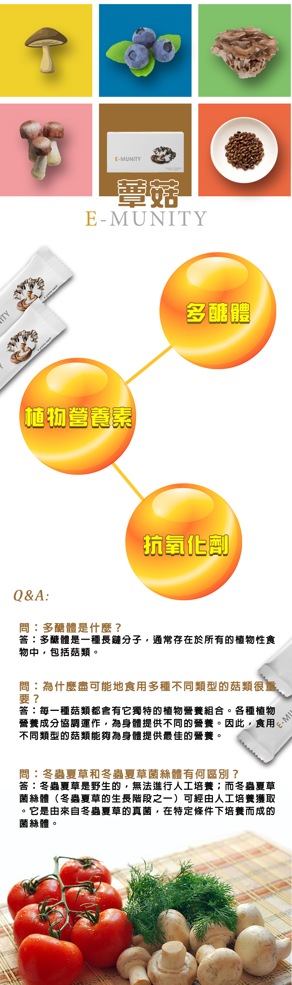 主成分:冬蟲夏草菌絲體、椎茸、巴西蘑菇、舞茸、決明子、藍莓