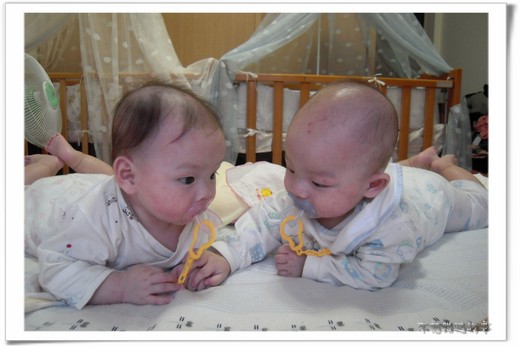 我們家小時候雙胞胎也有類似的情形。給您參考一下﹕