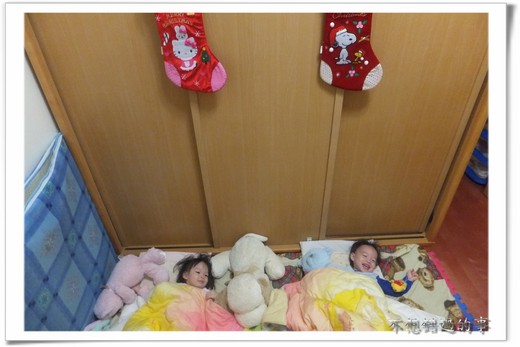 我們家的兩個小朋友現在也是睡著衣櫃跟大床中間耶~~也是舖了一個雙人床墊給他們睡,也是蓋3M的兒童被耶!!