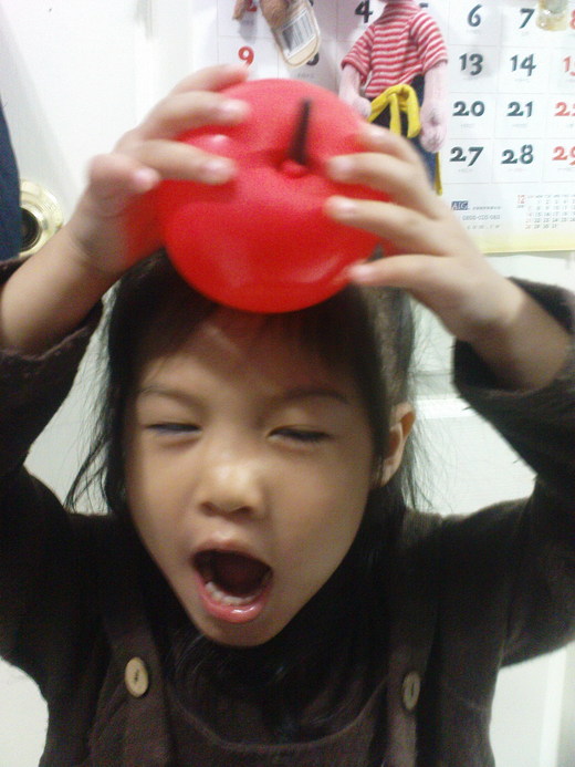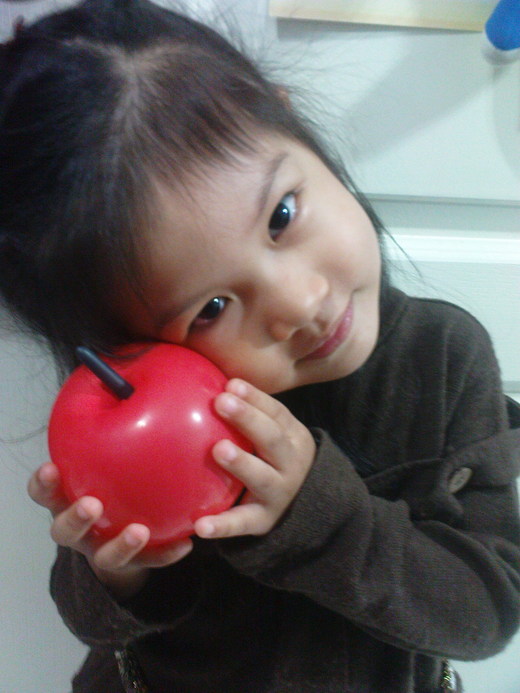 我就跟小幸韻說:妳拿著紅蘋果我幫你拍幾張