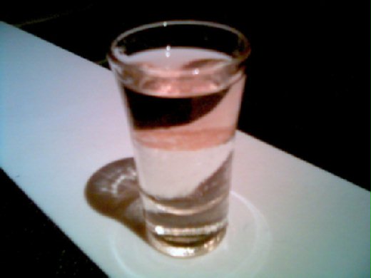 這是個 Shot 所以是一杯盡,Shot 所呈現的是三層 ,喝下去只有一句話,說不盡的味道囉,因為有Tabasco 會覺得有點辣辣的,但又加上有 Sambuca 是甜的,有點難以形容的味道,基本上我還是建議,千萬別空腹喝酒,對身體不好!