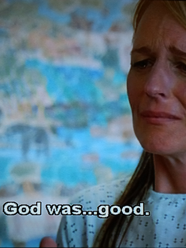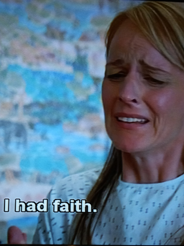 這部電影讓我最有感觸的一段,是當April準備進行接受人工受孕時,Bernice發現凡事必先禱告的April居然沒有向上帝祈求讓自己受孕成功,於是追問April原因。April一開始不肯回答,後來才坦承自己對上帝已失去信心,她不想再把希望交託給上帝了。