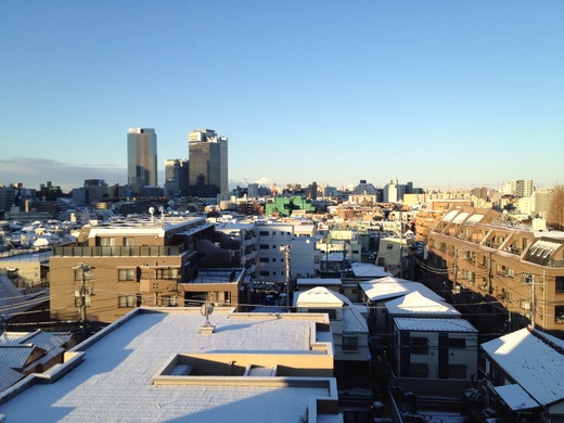 清晨趁著曦光出陽台,千家萬戶屋頂皆茫茫一片。雪花把醜陋格差的世界覆蓋得公平純淨,只有遠處新宿西口的高層大厦仍舊鉛灰鐵冷的俯視著紅塵眾生,即便是大雪也沾染不上那高不可及的天上宮闕。日本象徵的神山富士終於白了頭,隔著千門萬巷,遙遙讓人膜拜。只是這美麗的形象只能維持一個早晨,待日頭高照,雪化霜融,遍地泥濘,便寸步難行。更糟的是夜晚氣溫再降,殘雪凍成滑冰,那才是另一場惡夢的開始。