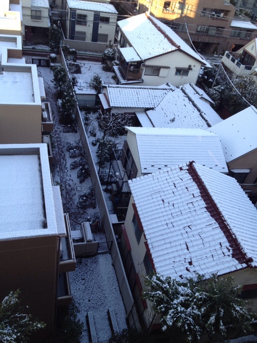 雨是午後開始降的,綴著鋒面寒流,凍心沁脾。到了八點,地面氣溫降到三度,便有雪屑連載雨水飄落。此時東京人尚未有危機意識,行人車輛照常往來。十點鐘有人在FB上登了小雪人照片,驚起推窗,只見鵝毛般的雪片,猶如飛蛾般聚集環繞在螢白的街燈下。正逢舊曆大年初一,乍見瑞雪還是有些歡喜。畢竟距離上回東京積雪,也有好些年了,物稀為貴,也倚欄看了一會。然而當看到地面房頂雪積三寸,心便不由往下一沈,明天積雪彌地,雪滑霜濃,單車不好騎,真不知要走多久才能到公司?