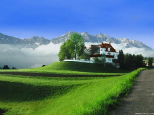 綠草如因,山水寧靜,雲氣圍繞,人間仙境嗎?