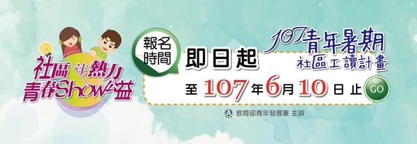 「107年青年暑期社區工讀計畫」投遞履歷 現正報名中!!!! 暑假又要到了!學生們想工讀,該去哪裡找適合的職缺呢? 教育部青年署為讓青年了解職場、及早規劃職涯,提供大專院校學生多元職缺和優質工讀環境(...